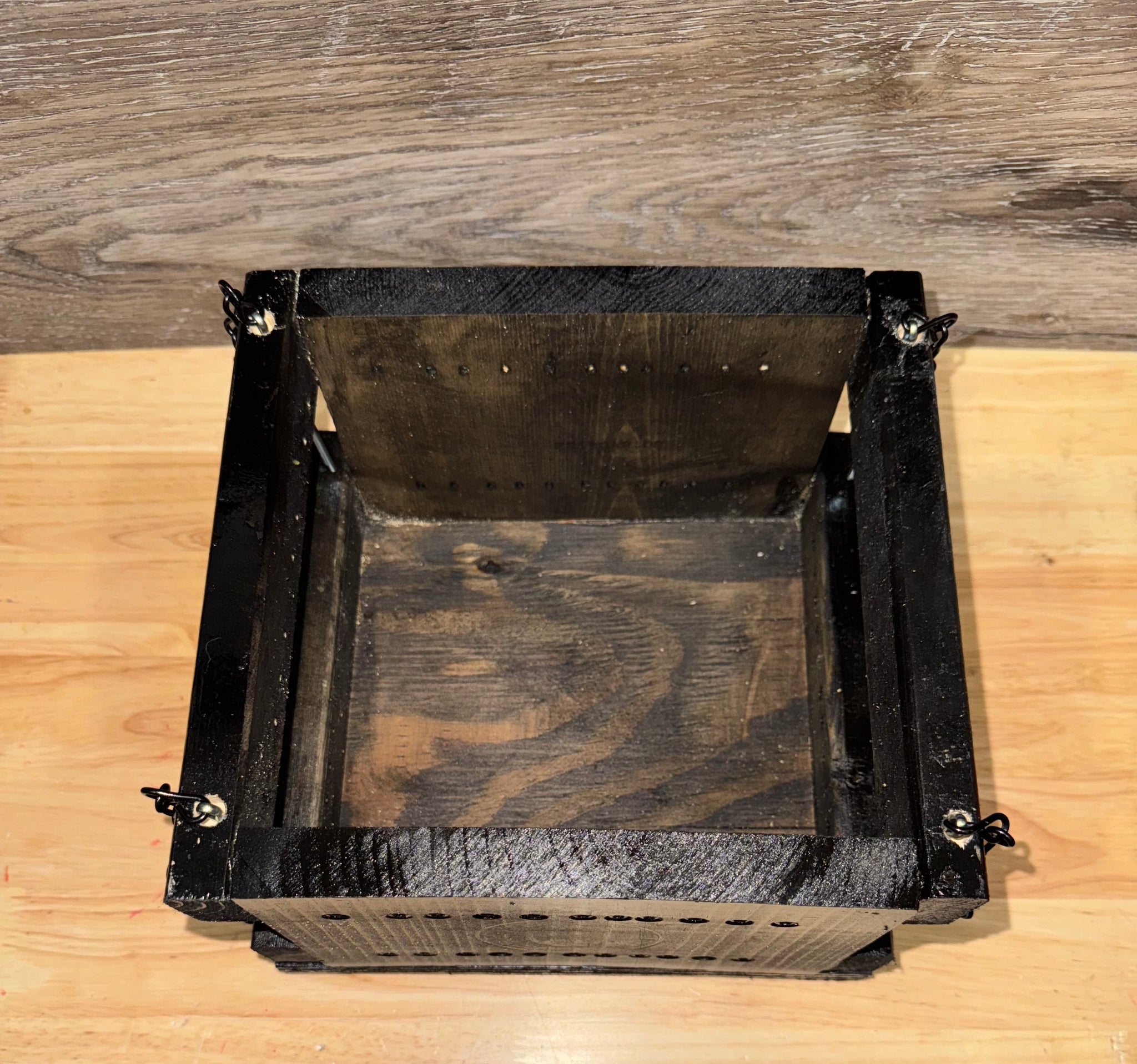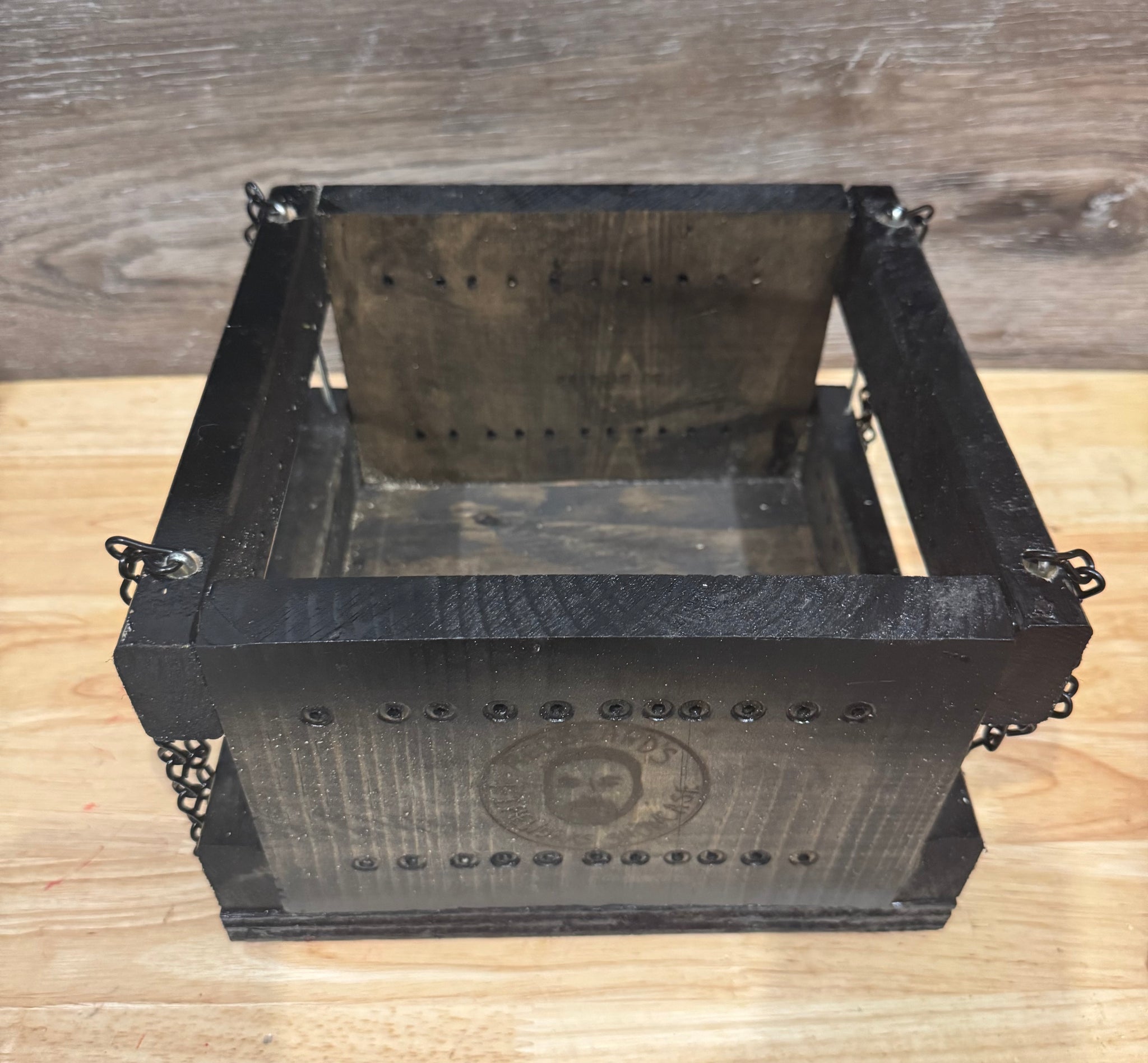 The first crate style product designed to hold fireworks aerial cakes and mortars straight without the use of glue, tape or boards. No longer do you need to worry about small and medium cakes tipping during use, due to this new innovative design. This Single box version of the Scurvy Dog holds your fireworks secure through the use of 3” Cotter Pins and is an affordable way of making sure your smaller 1.4 consumer fireworks stay put. There are pin positions throughout, allowing you to put a pin around each firework you place.This is a perfect companion to popular fireworks assortments. Everyone wants to see them ignite the air and not your guests or property. You simply place your firework inside the “Musket Shot” corner, fit in the adjustable pins, light the fuse from the side, and sit back to enjoy.